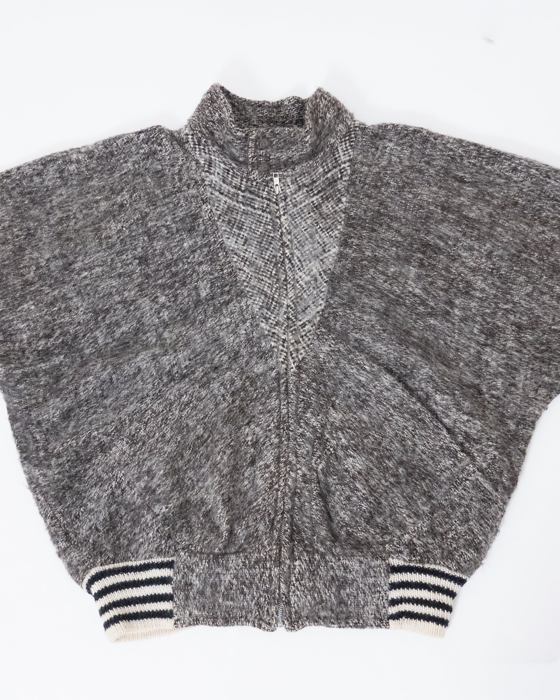 Dolman sleeve panel switch wool knit blouson