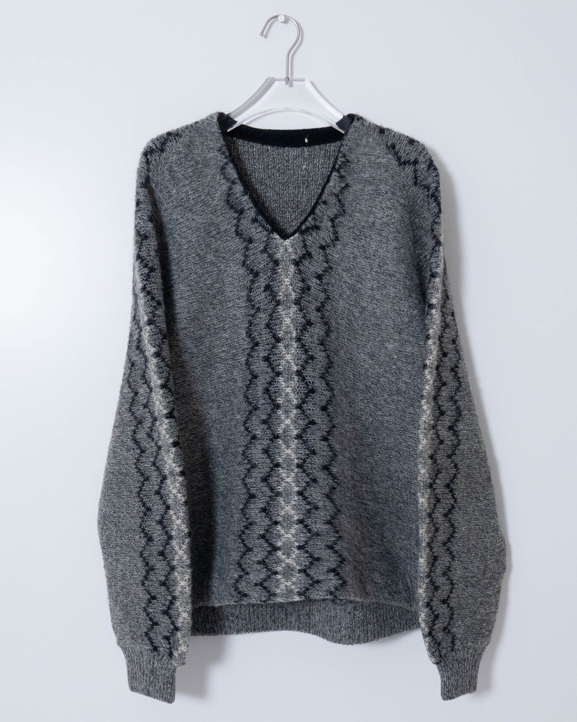 Vintage v-neck pattern mohair knit sweater